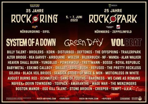 Donnerstag, Oktober 6: Slipknot, Rob Zombie, Evanescence, Stone Temple Pilots, Killswitch Engage, Bad Religion, Ghostemane, Nothing More, Ice Nine Kills, Alexisonfire, Code Orange, Fever 333, Crown The Empire, Amigo The Devil, Ho99o9, POORSTACY, New Years Day, Cherry Bombs, Vended, If I Die First, Solence, Superbloom, Bloodywood